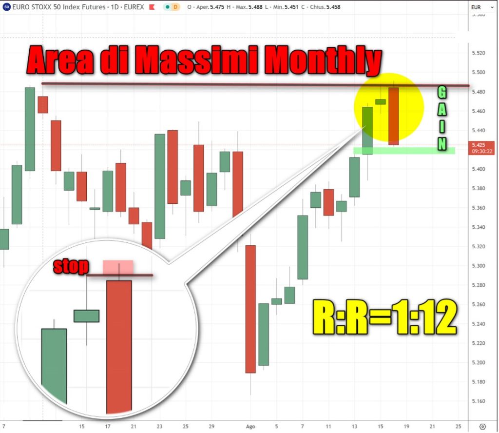 Riguardiamo il grafico e concentriamo la nostra attenzione sull’ultima candela quella di lunedì 18 agosto.