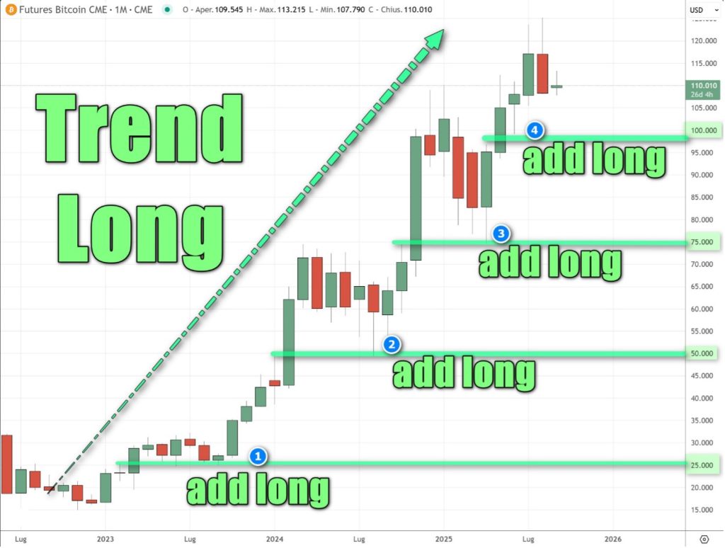 Il Trend è decisamente LONG. Negli ultimi due anni il prezzo è salito da 15.000$ a 125.000$. Una salita da record!!