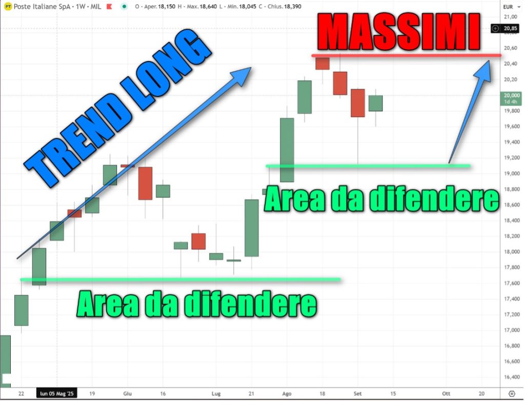 Se avessi acquistato le azioni sulla prima area intorno a 17,6 Euro, la seconda area quella intorno a 19 Euro poteva essere usata per acquistare di nuovo ad un prezzo conveniente in direzione dei massimi!