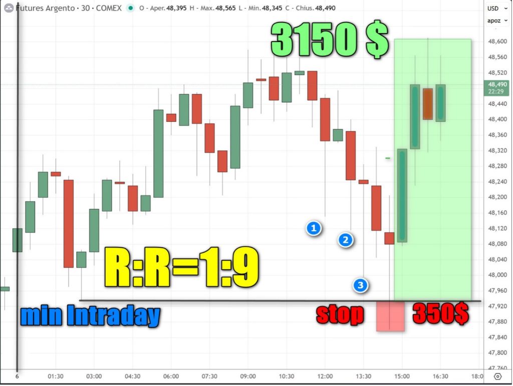 Ti faccio vedere una operazione sull’ARGENTO dove abbiamo utilizzato il TIME FRAME A TRENTA MINUTI.