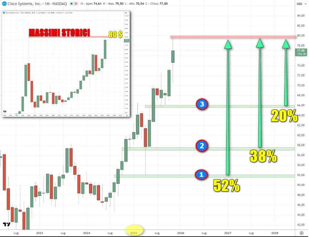 Parliamo di mercato azionario USA, ma non delle solite aziende che si occupano di intelligenza Artificiale. Una azienda leader nel suo settore che ha tutte le caratteristiche che ci occorrono per una analisi approfondita. CISCO SYSTEM.